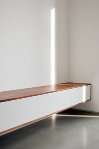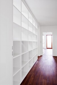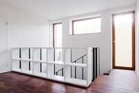 Vybavení moderního rodinného domu, kde je interiér vybaven především s ohledem na praktické využití jednotlivého nábytku. Vhodnou ukázkou je například knihovna, která tvoří zároveň zábradlí na schodišti.