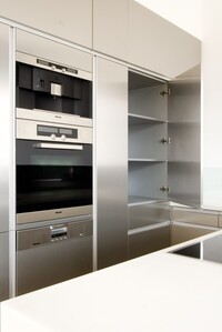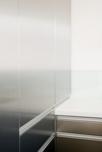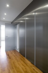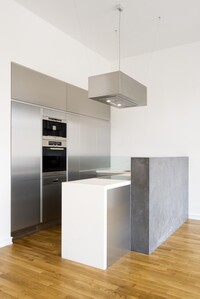 Rekonstrukce bytu v klasické zástavbě Starého města, kde jsou použity kontrastní moderní interiérové prvky jako: hliník, nerez, lamino.